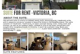 Brand new custom build home, with above ground 1 bedroom suite with lots of light from 2 large windows. Separate outdoor patio for sitting and BBQ if desired. New appliances: dishwasher, microwave, electric stove and en suite washer and dryer. Parking and internet included with rent. Hydro separate approximately $30-50/month. 5 minute drive to Royal Jubilee hospital; 15min drive to Victoria General Hospital and walking distance to supermarket and bus lines. Beautiful neighborhood of Fairfield, close to beaches and downtown. Enjoy West coast living at its best.