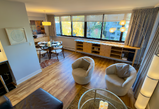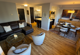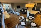 Set at 13th Avenue and Fir Street, this well-kept corner suite offers an easy, open layout that makes day-to-day living simple. The kitchen features stainless-steel appliances, plenty of cupboards, and an island that doubles as a breakfast bar. A nearby dining area seats four to six, and the bright living room—framed by floor-to-ceiling windows—comes furnished with a leather sectional and mounted flat-screen TV for relaxed evenings.