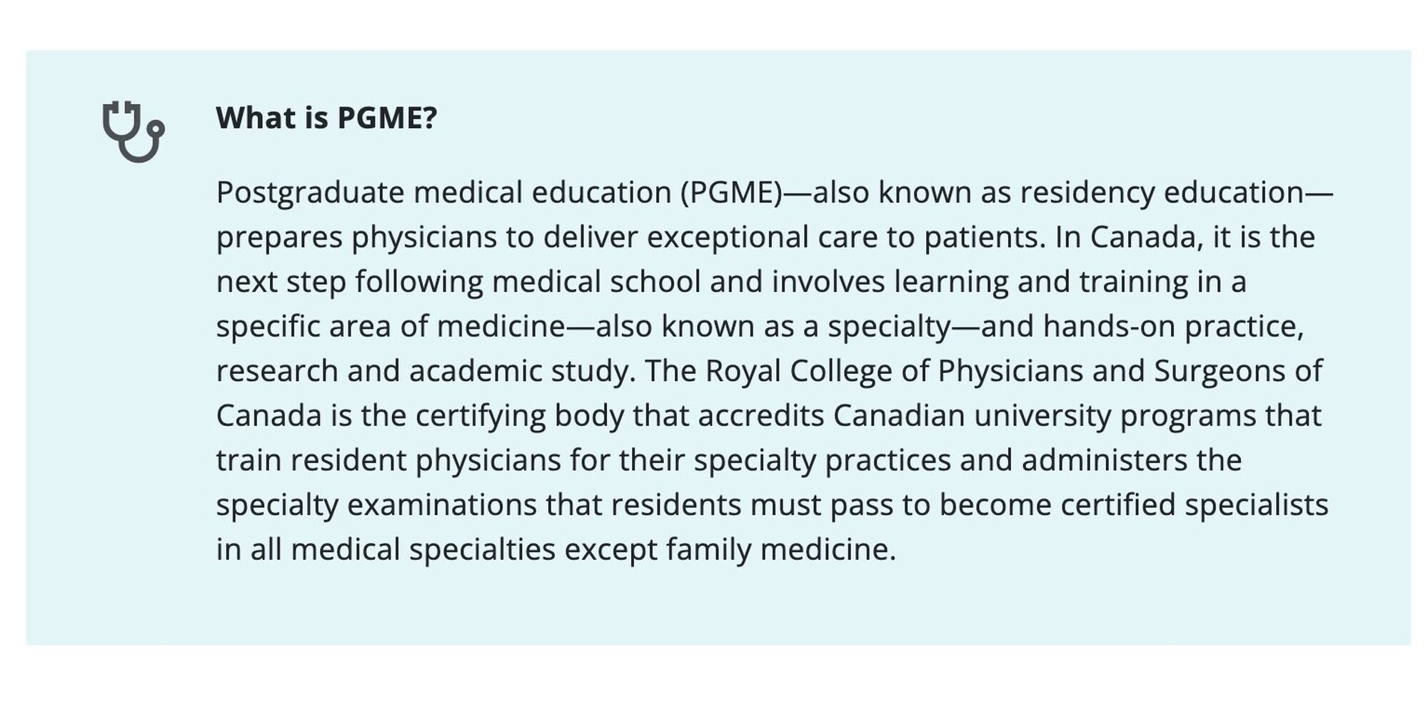 Trains in specialties like Family Medicine, Surgery, Pediatrics, Internal Medicine