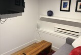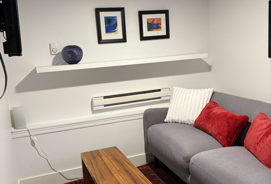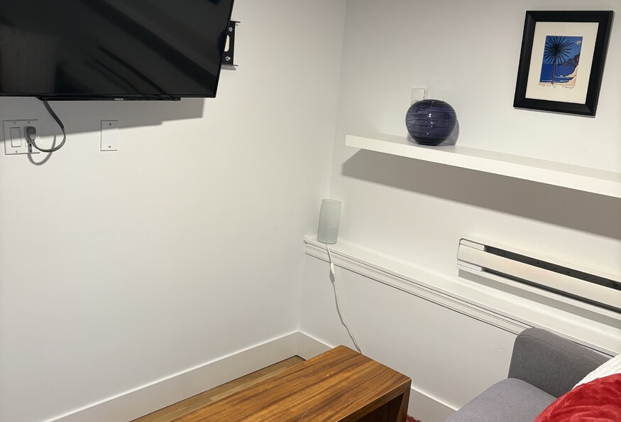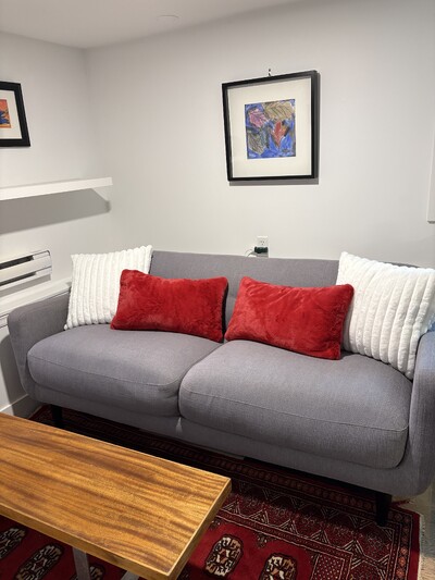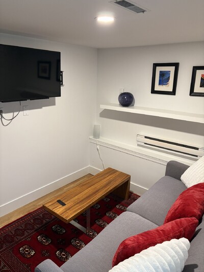 Fully furnished 1 bedroom with single bed in shared 2 bedroom suite (other bedroom also available short term to health care workers). Kitchen/laundry and bathroom shared. Each bedroom has it's own living room/TV, desk and mini-fridge, so you will have your own space. Landlord will use laundry 1x/week. Kitchen is fully stocked with air fryer, microwave, hot plate, all pots and pans, Nespresso, small appliances, dishes and cutlery. Suite offers wifi, utilities, laundry and smart TVs with Netflix etc.