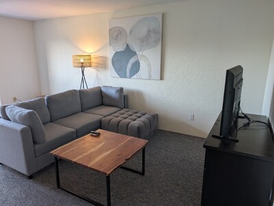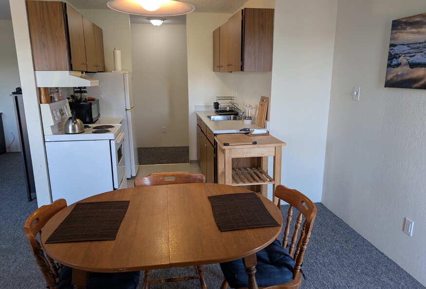 This 800 sq ft fourth floor top-level suite is a self-contained ideal for medical trainees and shift workers. The kitchen is fully-equipped with a boddum to make french press coffee, a crock pot for easy meals and is close to restaurants.