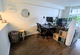 The unit comes fully furnished (including a TV, couch, chairs, two work desks, a king-size bed, and a large walk-in closet / den area for additional storage), and features a waterfront view, and in-unit washer and dryer. Perfect for an individual or couple.