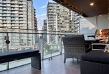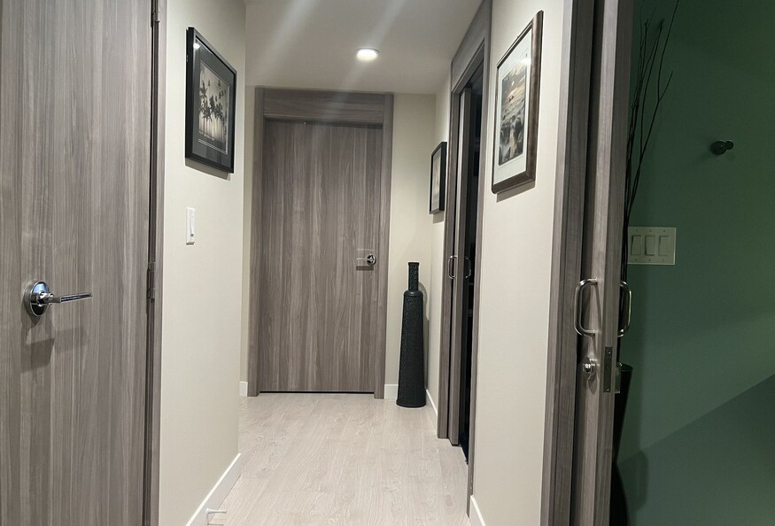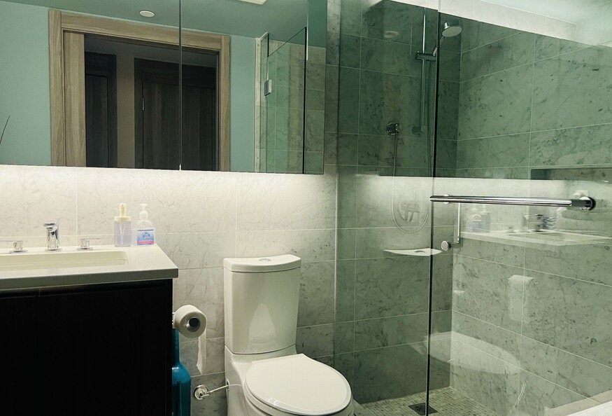 You will use the main hall bath next to the front entrance which has a large walk in shower. The bonus is the 300 SF balcony with all the outdoor furniture and bbq set up with a view of our water gardens, Hinge Park, downtown and the mountains.