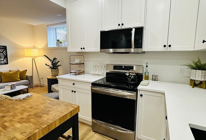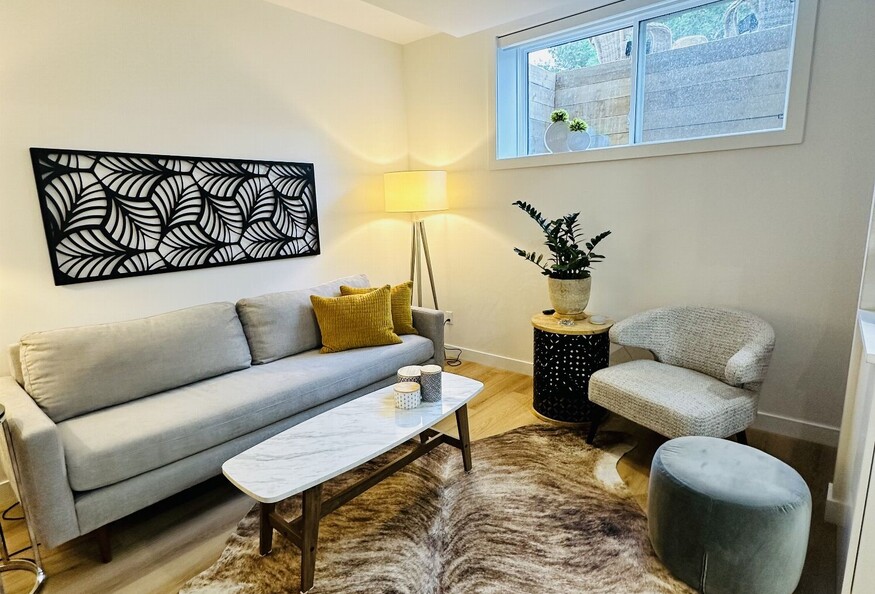 Lovely Fully Furnished 2 bedroom or 1 bedroom plus den in the sought after community of Parkdale, just steps to Foothills Hospital and a short walk to Alberta Children's Hospital. Blocks to The Bow River Pathway and 8 minutes to downtown Calgary. We are seeking quiet healthcare worker(s), non-smoking, no pet home. 990 Sq Ft living space with designer kitchen, in-suite laundry, heated floors, bright with 9ft ceilings, hardwood floors and brand new! Private entrance with outdoor space, includes street parking, all utilities, water, heat, internet, and Netflix. Designed for comfort and convenience - just bring your toothbrush - everything else is included!!