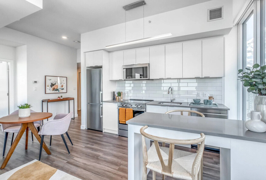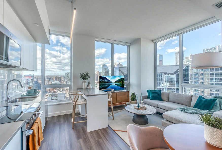 This 2 bedroom furnished apartment near downtown Calgary located in the dynamic Beltline neighbourhood places you just steps from Victoria Park-Stampede Station, downtown business districts, top restaurants, cafés, and entertainment venues. With quick access to public transit, river pathways, parks, and cultural attractions, the location offers the perfect balance between urban energy and everyday convenience. Designed for modern city living, BLVD Beltline is a contemporary, amenity-rich residential community that prioritizes comfort, natural light, and lifestyle flexibility. The building combines sleek architecture with thoughtfully designed common spaces, creating a vibrant yet refined environment ideal for business travelers, professionals, and extended stays seeking a 2 bedroom furnished apartment near downtown Calgary. - 2 bedroom furnished apartment near downtown Calgary starting at approximately 901 square feet - Kitchen: fully equipped with essential appliances, cookware, and utensils - Primary bedroom features a queen-size bed, an ensuite bathroom with a shower, and storage space - Second bedroom also features a queen-size bed - Bathroom: 2 modern full bathrooms with a tub - Open-concept living and dining area - Separate workspace available in most suites - In-suite washer & dryer - Self regulated air conditioning and heating - Unlimited high-speed wireless internet and Smart TV - Deluxe Bedding, linens and towels included - Parking available (additional fees apply) - Pet Friendly options available (restrictions and additional fees apply) - Building Amenities: Outdoor pool, two‑storey fitness centre with yoga studio, co‑working and lounge areas, sky lounge and terrace, outdoor cinema, fire lounge, golf simulator, and pet spa - Guest Services: 24/7 support available Note: Photos may not represent the exact suite.
