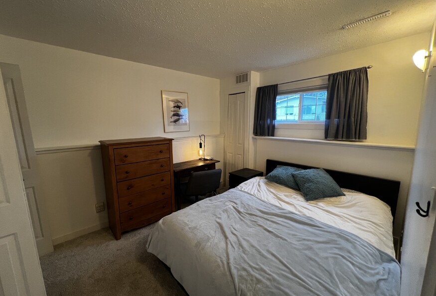- Private furnished bedroom (bed, desk, dresser, chair, lamp)