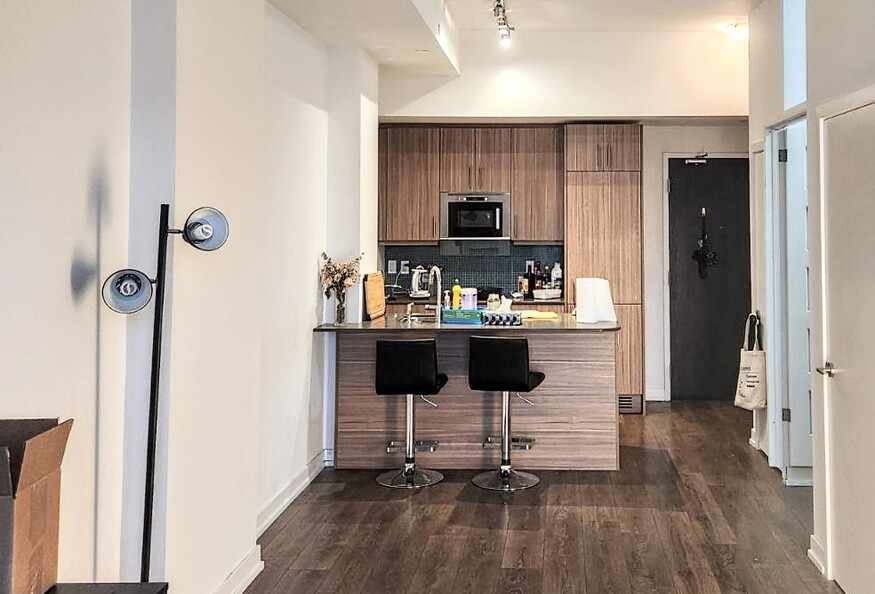 A NEW CONDO with 1 bedroom + den and a balcony available for rent, located at Spadina Ave/College Street. The den (No window) can be a second bedroom that fits a Bunk bed with a desk exactly and has a French-styled door installed. a) Price is $2620 including rent of $2500 and utilities deposit of $120 for 12 months rental term b) Price is $2620 including utilities for 4 months rental term. c) Price is $2820 including utilities for 1-month rental term d) Price is $750 including utilities for 1 week rental It's a 2-minute walk to University of Toronto (U of T) campus, and has a 20,000ft T&T grocery store and TD bank at the front steps. Apartment has European-style kitchen with dishwasher, in-suite washer and dryer, 9ft ceilings and 5'' wide laminate flooring. Available on May 1, 2026 Building amenities include: - Fitness centre (pics available if requested) - Party and media rooms (pics available) - Sundeck with 2 barbecues - Guest room (pics available) - Bicycle Storage - Visitor parking/underground parking space can be rented Requirements: - One year lease - flexable - Nonsmoking and no pets - Proof of income - Credit report with score - Price is $2620 including utilities If you are interested in this unit, please contact Wendy