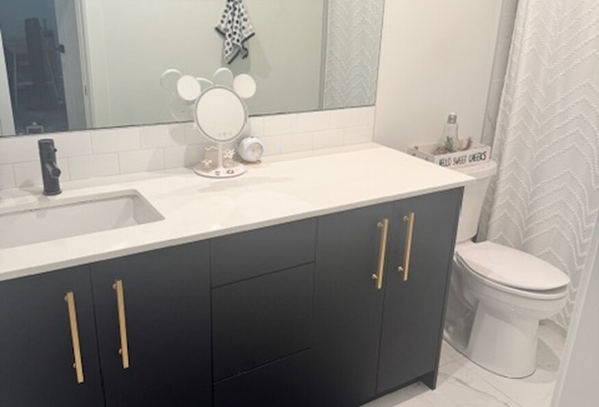 The apartment: Pearl white colour palette Soft closing cabinets Gas range Dishwasher In suite laundry Caesar stone counter tops & backsplash Undermount sink
