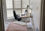 - Bedroom is 9 ft 11 in x 8 ft 2 in ft, NW-facing with a large window that receives tons of natural light. The room will come furnished with a twin bed (mattress, pillow and duvet included), large desk and office chair