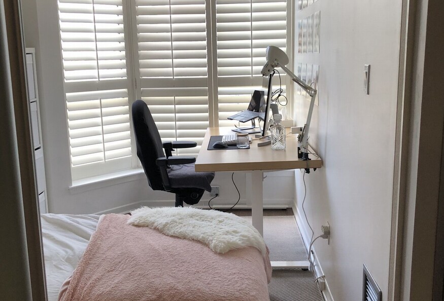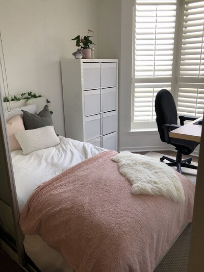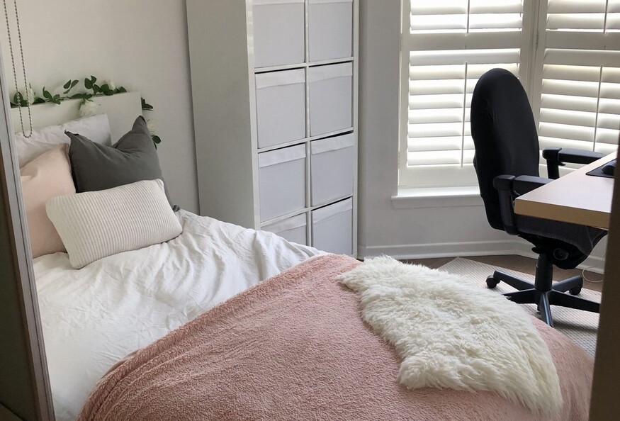 - Bedroom is 9 ft 11 in x 8 ft 2 in ft, NW-facing with a large window that receives tons of natural light. The room will come furnished with a twin bed (mattress, pillow and duvet included), large desk and office chair