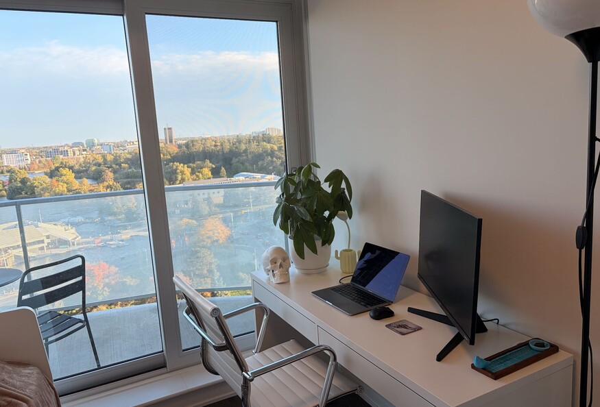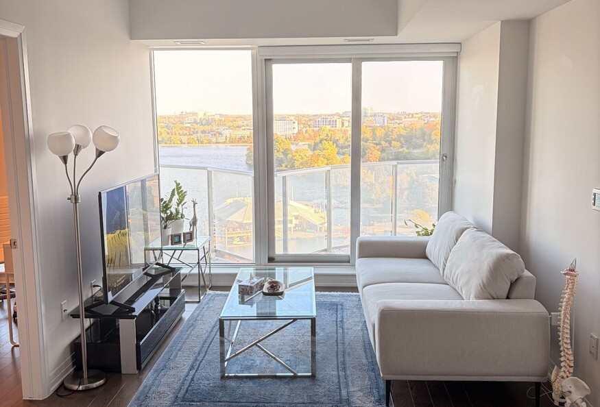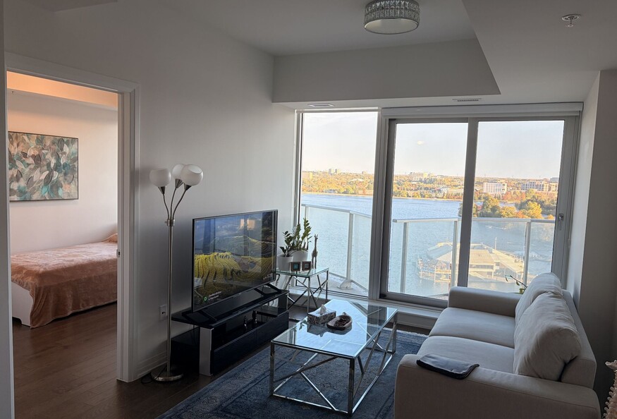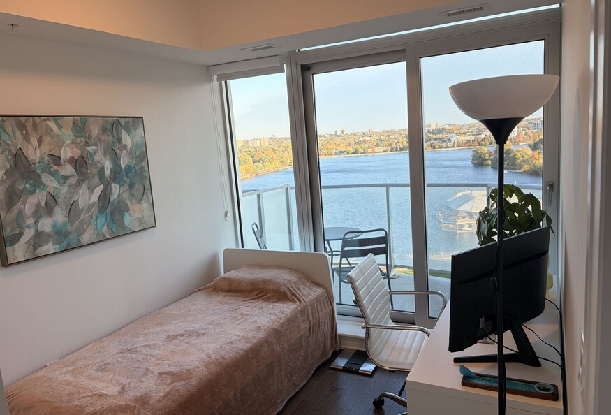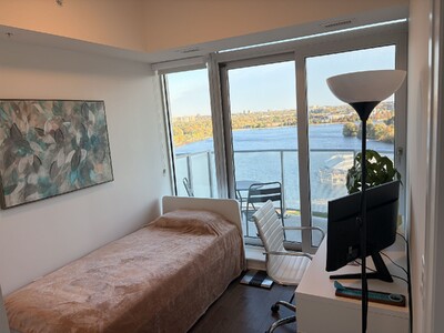 This private furnished room is located in a 2-bedroom unit with private access to a balcony and stunning views of Dow's Lake. The room includes a private bathroom and shower. Guests can enjoy a variety of amenities, such as a pool, gym, game room, and theatre room. All utilities are included in the price. The unit is just a 13-minute walk to Civic Hospital, and there's a shuttle service available for a convenient 2-minute walk. Shared living and kitchen spaces are available, complete with a dishwasher and laundry facilities.