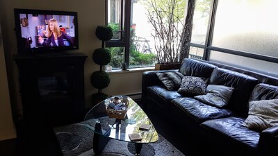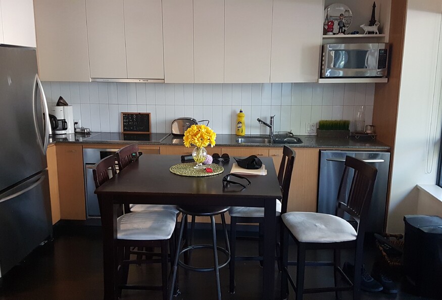 • Furnished studio suite available for rent in Vancouver • Desirable west side location at 12th and Heather Street in Fairview Heights (Vancouver General Hospital and BC Centre for Disease Control area) • Concrete construction; 9 feet ceilings; hardwood and marble floors; granite counters; stainless steel appliances; fireplace; in-suite laundry; secured underground parking; modern European cabinetry; stylish indoor and outdoor contemporary furnishings • Town-home style with two entrances (private entrance from street); terrace & garden • Impeccably maintained and furiously clean 525 square foot condo • Stainless steel appliances (fridge, stove, oven, microwave, dishwasher); coffee maker; tea kettle; toaster; blender; coffee grinder • Wireless internet included • Excellent location: 3.5 blocks to Canada line; 1 block to City Square Mall • Condo is on bike route (Heather Street) • Non-smoking / no pets