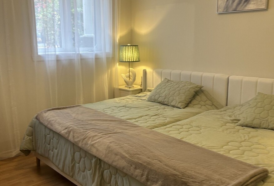 Beautiful Two-Story Home for Rent in Sherbrooke Discover comfort and style in this gorgeous two-story house located in a very quiet, private area surrounded by lush green hedges. The home features a modern and spacious living room on the second floor — perfect for relaxing or entertaining. There are two cozy and bright bedrooms, each thoughtfully furnished for comfort. One bedroom includes a queen-size bed, while the other offers two full-size beds, ideal for families or guests. Enjoy your own private bathroom and the peaceful atmosphere of this charming residence.