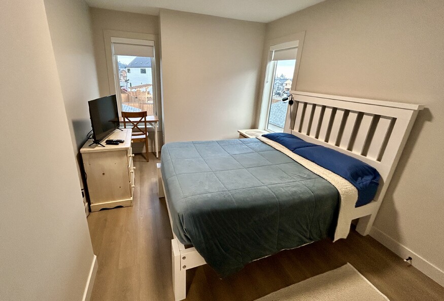 Bedroom in newer row home with private bathroom. Walking distance to transit, Quality Foods and beach. 15” to VGH. Street parking. Will consider pet. I am 57 year old RN, work full time shifts at VGH. Have friendly Springer Spaniel, Winston. Quiet home - I just work, sleep, hike and watch sports haha. Garage parking for motorcycle and/or bicycle available.