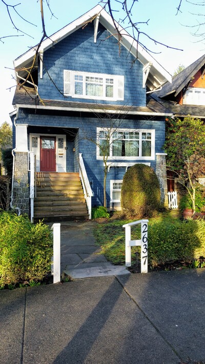 We live in this beautiful home and only rent it because we are traveling. Over the past 13 years we have hosted visiting UBC professors, graduates and faculty, and medical personal to the various hospitals close by. The house is ideally suited for a maximum of 6-7 people. We only accept bookings from families and/or related couples, such as parents with their adult children, or a couple with children or 2 to 3 couples. We do not accept bookings from unrelated groups. Nearby hospitals Vancouver General Hospital, UBC Hospital, BC Children's Hospital, BC Women's Hospital & Health Centre , St. Paul's Hospital Near By Coleges and Univeristies UBC , BCIT Downtown Campus , Langara College, VCC Vancouver Community College - Downtown Campus, Eton College Canada, Corpus Christi College,LaSalle College Vancouver University Canada West (UCW) Near By Schools Carnarvon Elementary, General Gordon Elementry, Kitsilano Secondary, Lord Byng Secondary Sleeping arrangements The house has three bedrooms: Two bedrooms each have one double bed The third bedroom has one double bed and one twin bed Guests should be comfortable sharing beds (two guests per bed). If booking for 7 guests, three guests will be sharing one bedroom. The home You will have 2.5 stories entirely to yourself. The house is eclectically decorated and full of character, featuring heritage details such as: High and coffered ceilings in most rooms An exposed brick chimney wall A wood-burning fireplace Main floor The main floor includes: A large living room A craftsman-style dining room A fully stocked, renovated kitchen A powder room The kitchen opens onto a beautiful deck overlooking our backyard. Please note: deck furniture and the BBQ are available May through September only, as the deck is uncovered. Second floor The second floor features: A primary bedroom with a queen bed and ensuite bathroom A second bedroom with a double bed A second, newly updated and charming full bathroom Top floor Above the second floor is a newly renovated third bedroom/den. This space has lower attic ceilings (approximately 6 ft at the peak in some areas and 7 ft in others) and includes: An ensuite two-piece bathroom A double bed A Single Sofa Bed that can open into a comfortable bed A desk/workspace Important notes There is one additional bedroom in the house that is locked and not accessible to guests. The ground level of the house is fully independent from the main home upstairs and we keep it for our own personal use or rent it.