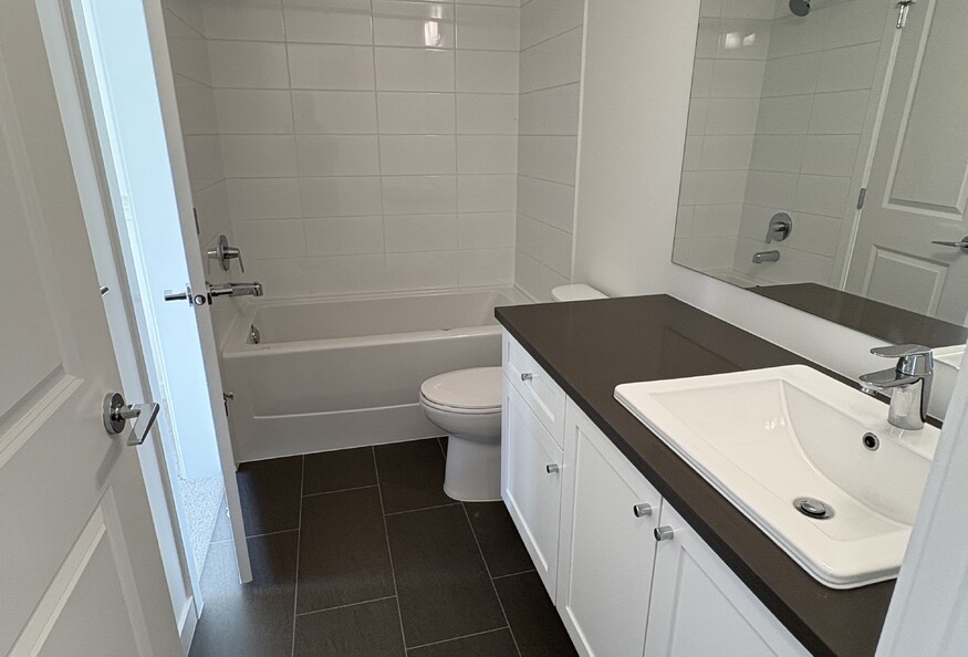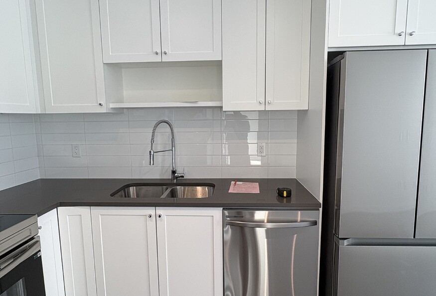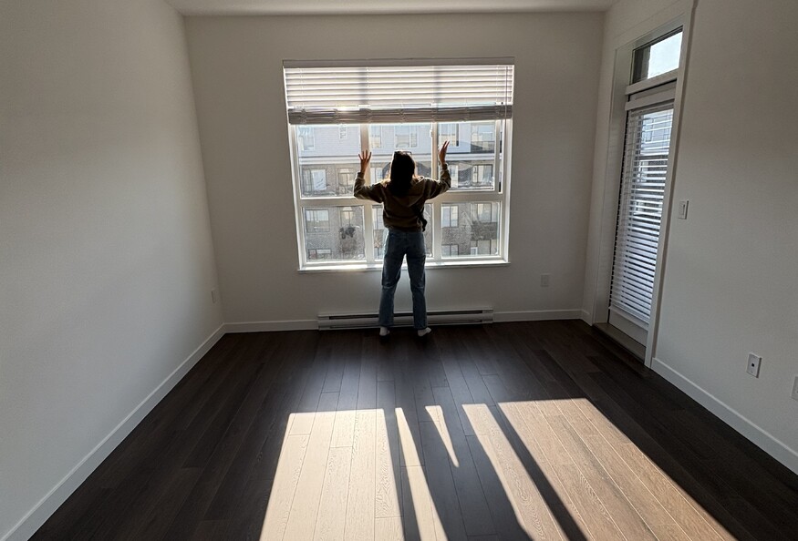 Beautiful 5th floor brand new east facing one bed and den condo. Fridge, dishwasher, stove, microwave ,washer and dryer included. Granite counter tops. And luxury vinyl floors and high ceilings. also included: 1 parking stall 1-4'x6' storage locker access to: outdoor common use village green and rooftop decks with BBQ's, lounge and putting green Huge 5,000SF indoor amenity featuring kitchen, dining, fireside lounge, co-working space, billiards table, ping pong table, yoga studio, gym, arts + crafts room