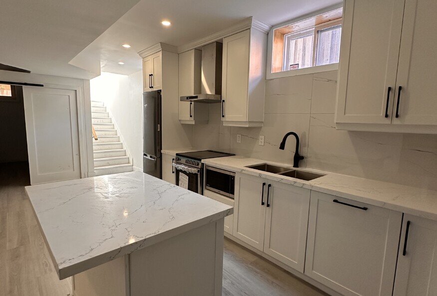 Unfurnished brand-new basement suite with a private entrance available for rent. Located in Kirkendall area, 20 minute walk to St. Joseph's Hospital, and 6 minute drive to McMaster Children's Hospital. Short drive away from Juravinski and Hamilton General. It's a lovely area (quiet and with lots of trees), nearby the walkable Locke Street and James Street. We are responsible and attentive landlords (both of us are medical professionals in Hamilton). Renovated this summer to add a large brand-new kitchen, in-unit laundry, and beautiful barn doors. Parking is available (please reach out to discuss parking arrangements). All utilities except for internet are included, and rent price is negotiable for longterm tenants. Please contact us for virtual or in-person viewings! Thank you in advance for your interest.