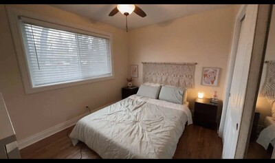 Bright and spacious 3 bdrm in the sought after Old West End. PRHC is less than 5 min walk away. Near walking paths, desirable schools, green spaces and more. Hardwood and tile throughout. Large custom kitchen with open concept dinning kitchen space. Massive sunken living room. 3 avg sized bdrms, bath has surround tub and shower with a double vanity. Each bdrm has a large double closet, ceiling fans and large windows. The 3rd bdrm has the washer dryer in the closet. Inclusive main level. 2 parking spaces. Private sideyard with privacy fence, gardens, stone walkways, lg floating deck, bbq space and shed. You're responsible for snow removal of your half of the driveway and lawn maintenance. A mower is provided. If interested please let us know a bit about who is looking to rent the space and for how long. We have rented to a Dr, nurses and other medical staff in the past 11 years. This was our first family home and we pride ourselves in being good landlords. Available Jan 1st, Feb 1st or anytime in between due to flexible tenants. The basement unit is rented as well so we ask everyone to be considerate of noise. Tenants often split the cost of internet.