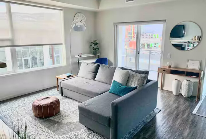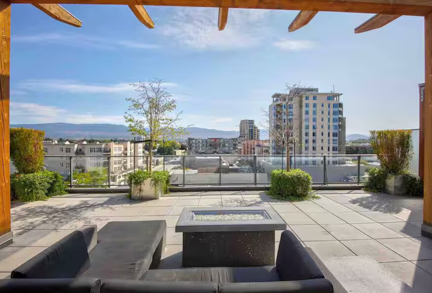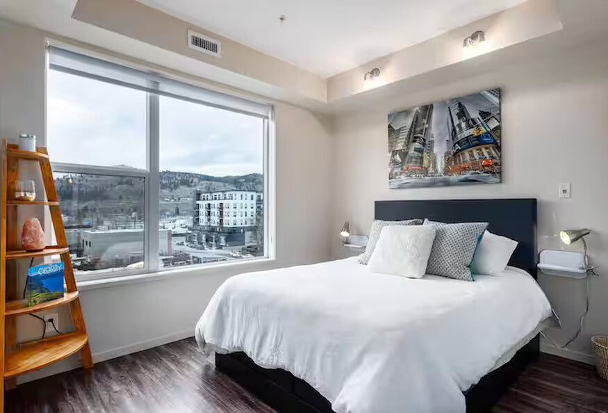 This fully-furnished two-bedroom, one-bathroom condo offers an ideal home base for medical professionals seeking comfort and convenience in downtown Kelowna. Located on the fifth floor of a well-maintained building in the city's cultural district, it's within walking distance of shops, restaurants, beaches, and a short drive or bus ride to Kelowna General Hospital. The suite is fully furnished and thoughtfully equipped with everything needed for a comfortable stay, featuring a contemporary kitchen, open living area, and two bedrooms located on opposite sides of the unit for added privacy. Enjoy your own private deck, access to a large shared patio and fitness centre, and secure underground parking. This is a quiet, accessible building with elevator access, perfect for professionals seeking a turnkey rental in a central location. Rent is $2,500 per month, including utilities. Pets may be welcomed for the right fit.