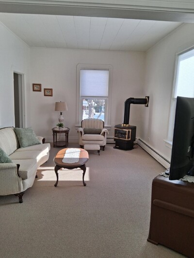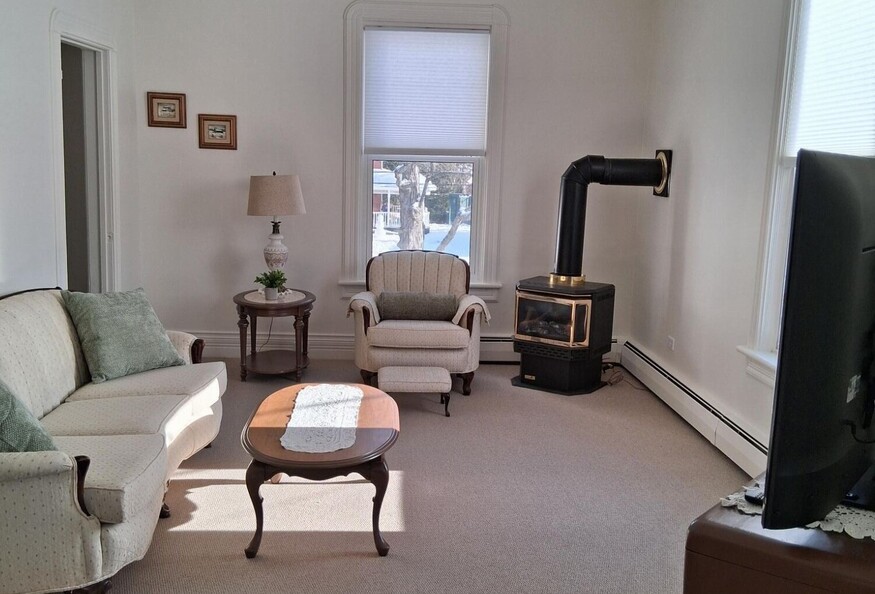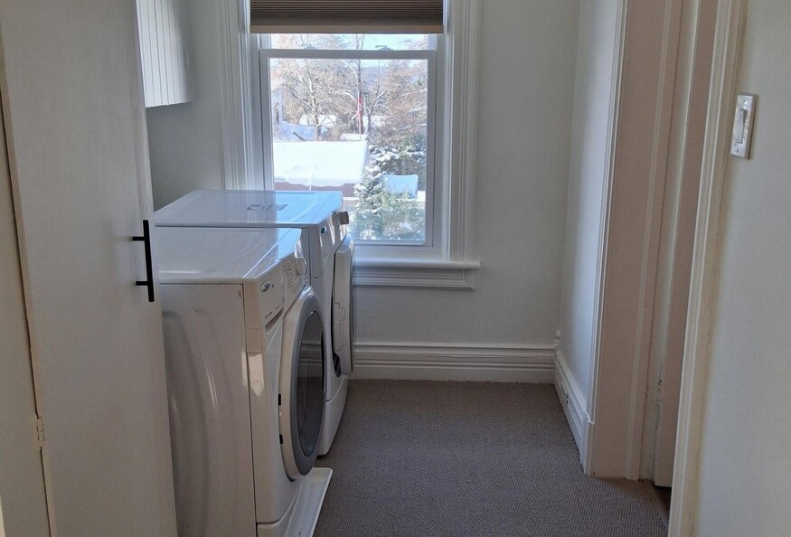 Charming, fully furnished Century Home Upper Level 2-bedroom or 1 bedroom and office 1,250 sq ft unit, comfortable living in a quiet, residential neighbourhood. This bright and inviting unit blends historic character with modern convenience. Situated just a 3-minute drive or a pleasant 14-minute walk from the hospital, the location offers exceptional convenience while maintaining a peaceful atmosphere. Inside, you'll find a generous living and dining area with ample natural light. The fully equipped kitchen includes everything you need for day-to-day cooking, from cookware and dishes to small appliances. The spacious bedroom provides a comfortable retreat, while the additional office/2nd bedroom (Single bed) is perfect for remote work, studying, guest or extra storage. A clean and well-maintained 4-piece bathroom, along with an in-unit washer and dryers. Private drive with snow removal included, offering Rent includes all utilities as well as high-speed internet. Move-in ready and available on a flexible month-to-month basis, this charming upper unit offers convenience, comfort, and character—all in an excellent location.