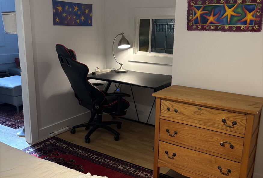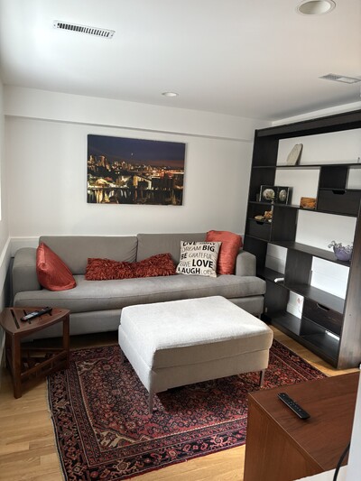 Fully furnished 1 Bedroom with queen size bed in a 2 bedroom shared suite (other bedroom available for short term rent to Health Care Professionals too). Shared kitchen/laundry and bathroom with other tenant. Each bedroom has it's own separate living room with smart TV, plus desk and mini fridge in bedroom. Wifi, utilities, and smart TV all included.