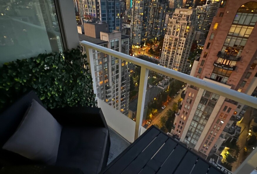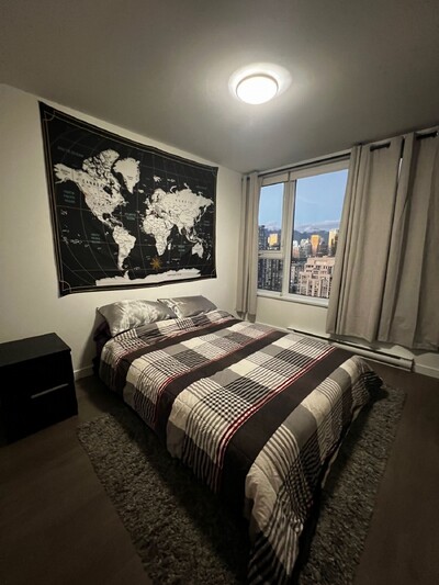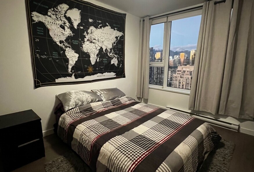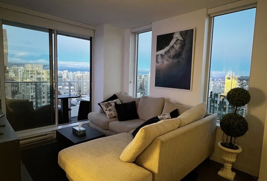 Welcome to my beautiful high-rise apartment, offering stunning views of the mountains, the city, and a bit of water. The apartment is one bedroom and one bathroom. The bedroom is spacious with plenty of closet space for clothes and personal items. The bathroom features a bath/shower in one with great water pressure. The kitchen comes equipped with a dishwasher, microwave, and fridge, along with cooking utensils, dishes, and glasses. There's also a washer and dryer, and a small dining table. The living area has a very comfortable, large sofa that can also be used for sleeping, and a large, smart TV with cable. There's a small balcony with couches and a table to enjoy the view. With lots of windows, it's the perfect place to be in Vancouver, close to transport, grocery shops, and the seawall.
