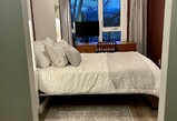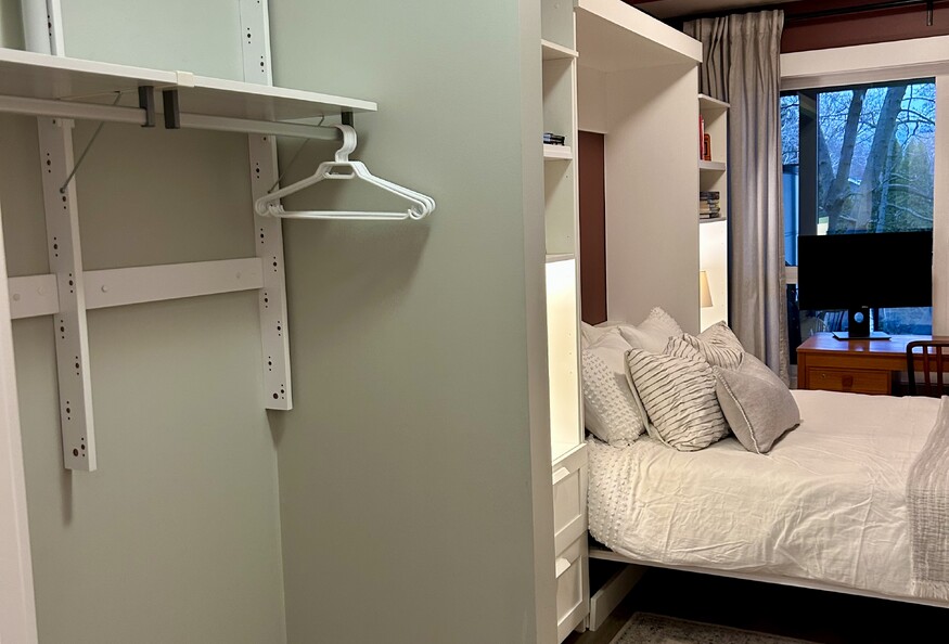 Bright and cozy fully-furnished east-facing condo built in 2019, ideally located just a 900 m walk to KGH. In the opposite direction, a short two-block stroll brings you to several beaches and vibrant downtown Kelowna. This is a shared accommodation with a professional female and her friendly 10-year-old Mexican rescue dog. The available space includes a private bedroom featuring a double-sized Murphy bed for added flexibility and space, a desk, a private bathroom, and a walk-in closet. The bedroom is conveniently located on the opposite side of the condo to ensure privacy. A spacious, sun-filled 300 sq ft deck offers the perfect place to relax and unwind during the warmer months. Please feel free to email me with any questions or to request additional photos.
