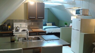 Our beautiful, cozy loft offers a warm and inviting space in a quiet home, ideally located near King Street West and Dundurn Street in West Hamilton.