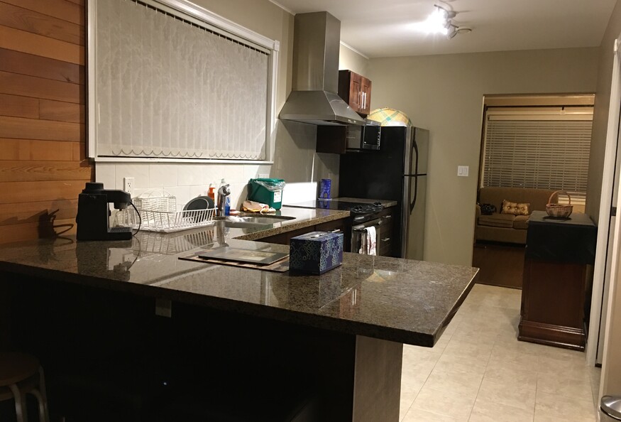 This private modern 1000 sq ft suite with private entrance via the garden is furnished with a comfortable queen bed, study desk and a fully equipped granite kitchen, living area and lovely bathroom. Our previous tenant/s often enjoy relaxing in the garden.