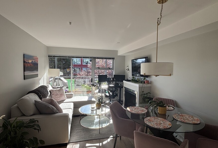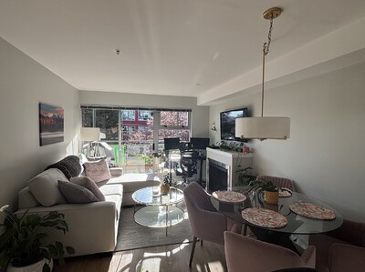 Fully furnished 1 bedroom/1 bathroom condo in the Railyards neighbourhood of Vic West. Available May 1st, 2026 for a one year lease term. 1 min walk to Galloping Goose Regional Bike trail, 5 min walk to Westside Village Shopping Centre. On #14 bus route to UVic, RJH and VGH, and #10 bus direct to RJH. Includes underground secure parking for 1 vehicle, bike storage, in-suite laundry and balcony including BBQ. Dogs okay with pet deposit, but no cats.