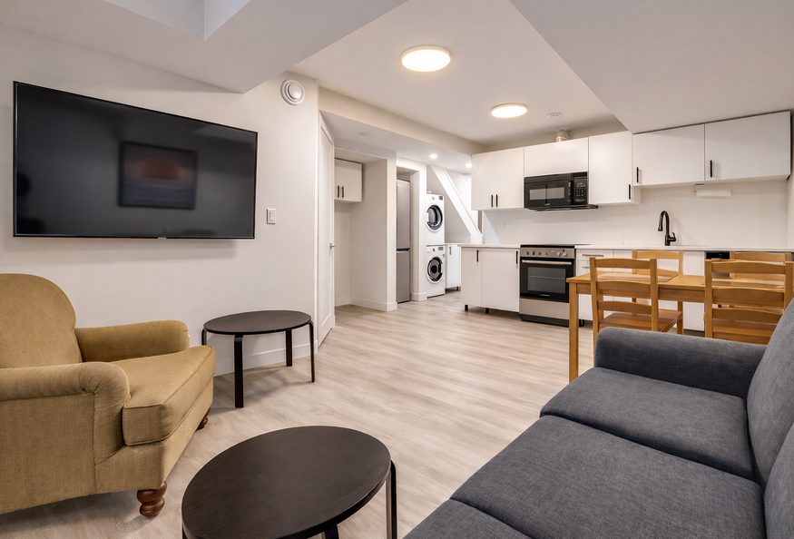Spacious, fully furnished 1-bedroom suite with a private separate entrance—ideal for Southlake staff or professionals looking for a clean, quiet, all-inclusive stay. Layout This is a 2-level private suite: Bedroom is above ground (bright, full-height) Living room + kitchen + private laundry are on the lower level Commute & location 12-minute bus to Southlake Regional Health Centre 9-minute walk to Newmarket Bus Terminal 15-minute walk to Upper Canada Mall (shopping, groceries, dining, essentials) What's included Fully furnished Utilities + high-speed internet included Private in-suite laundry Private separate entrance Parking No on-site car parking available. There is space in the front yard (accessible from the sidewalk) to leave a bicycle or scooter at your own risk. Best suited for tenants using transit or ride-share. Availability / terms Available: April Minimum stay: 30 days Rent: $2000 / month (all-inclusive) To inquire Please message with: start date, length of stay, number of occupants, and a brief note about work/role. We respond quickly.