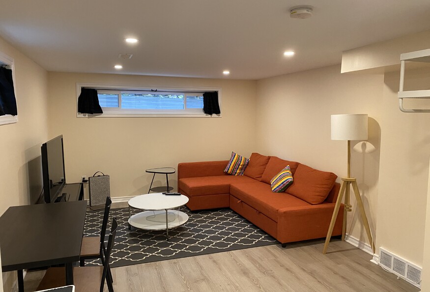 Clean and bright basement level one bedroom apartment. Nice living space with TV area. Kitchen, full bathroom, access to laundry room and parking spot in driveway. Close to the General campus as well as grocery store and restaurants.