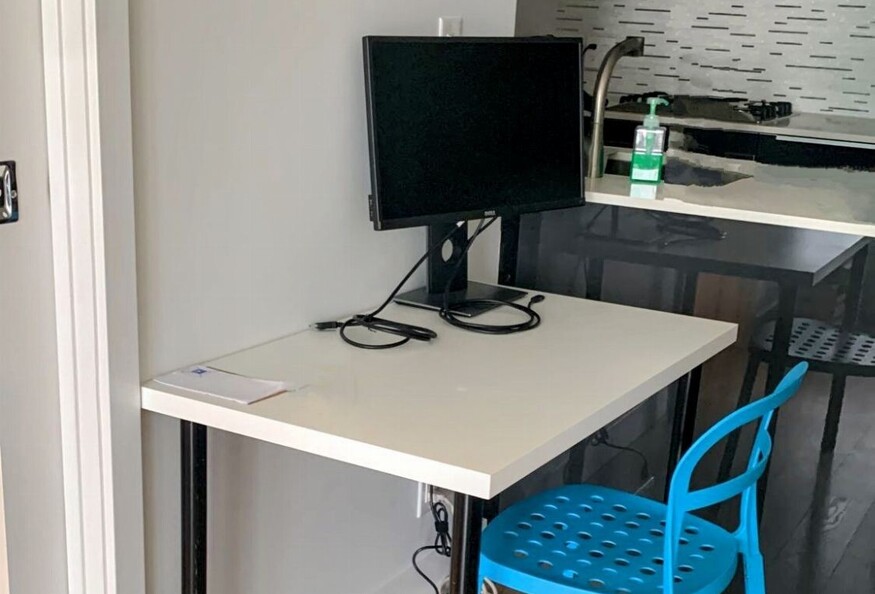 500 sqft 1 bedroom + den + 1 bathroom condo, furnished with one queen-sized bed, a bedroom with blackout blinds, a comfortable living area with a loveseat sofa and a dining table for 4, a bathroom, and a fully equipped kitchen. A desk + Monitor are provided. Beddings and towels are also available in the unit as it is also my home when I need to come back to town for work. (My dates are flexible though.)