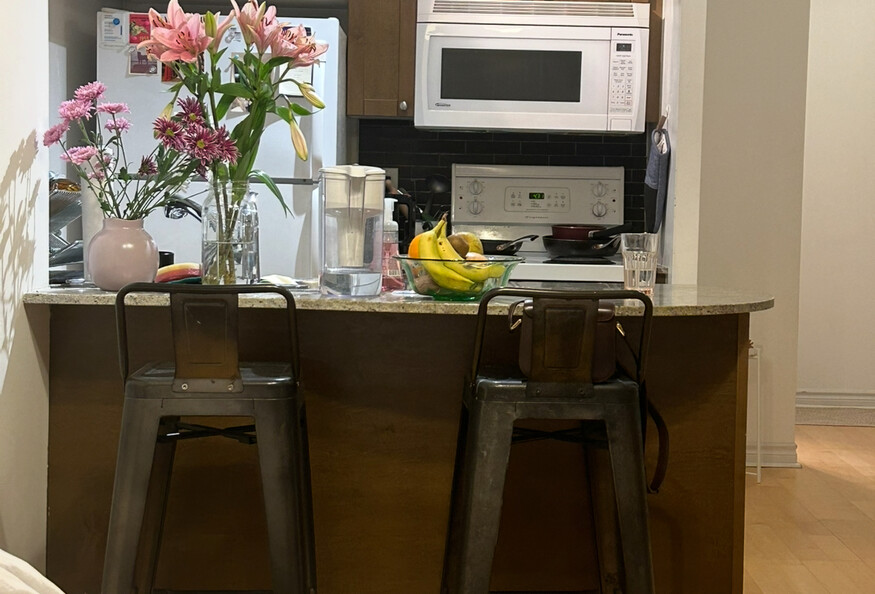 Furnished studio; dishwasher is broken, full disclosure. All utilities included plus wifi included. Safe, clean building with concierge. Good amenities - pool, hot tub, gym, yoga room, etc. For parking spot , I personally don't have one but owners in the building are always renting their parking spots, so I could find you a parking spot to rent. That would be a separate cost to this rental. Building connects to grocery stores, pharmacy, TTC. Washer/dryer in unit.