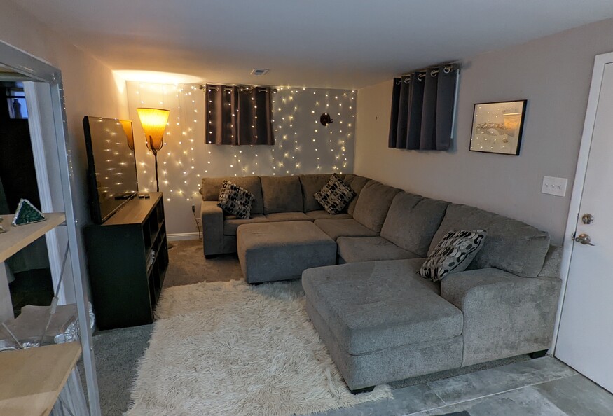 Kick back and relax in this calm, stylish space. Fits 2 very comfortably and in the spot that it says pets welcome, we mean dogs only! we only allowed cats in our home 1 time and it was really bad for US with fur matted in the carpets and tears in a couch cUshion, sorry but it was more trouble than it was worth having cats and we are very allergic The apartment has its own entrance and has full access to the backyard. The backyard is fully fenced in and secured for dogs! The space is newly remodeled and is very homey. the carpet and tile throughout the entire rental has been redone. Tenants have fully access to the entire space downstairs and the entire backyard area. the gated area is there to keep our dog in but you're absolutely welcome to have your pet in the same area
