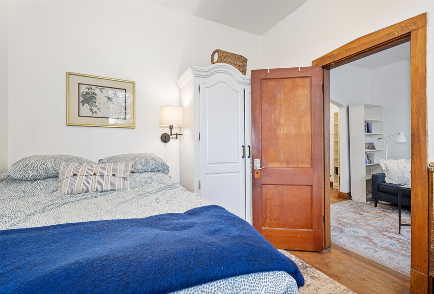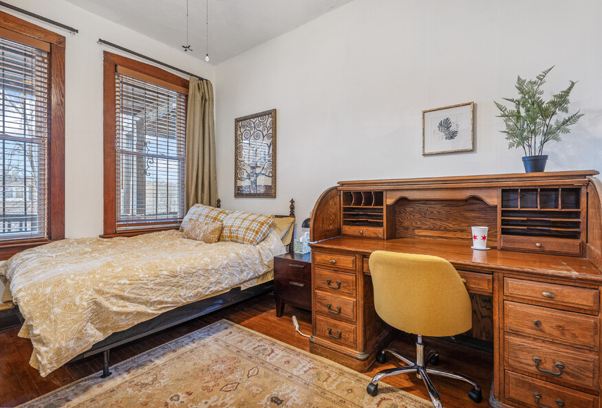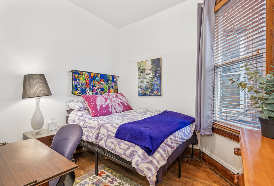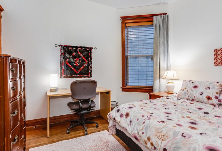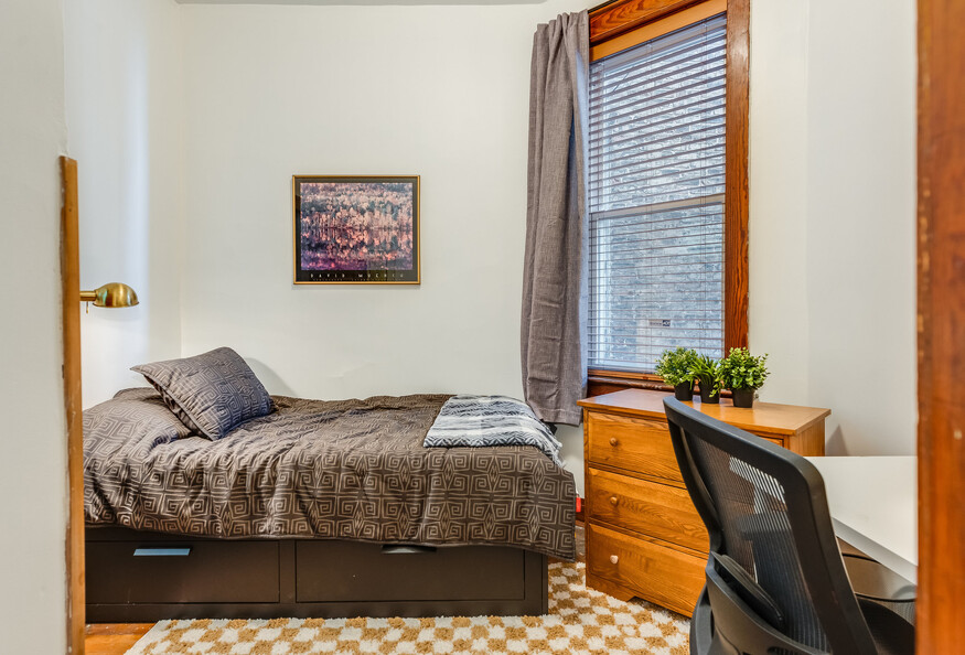 This listing is for a single-person private room in a shared apartment. Freshly updated apartment with lots of vintage charm on a quiet block. Fully furnished with plenty of areas to eat/study/lounge plus desks+chairs in every bedroom. Large pantry and brand new kitchen and bathrooms. Laundry and storage is in the basement. Window air conditioners in each room so you control your temp! Shares a bathroom with one other room. Close to Medical District and public transit, each room features a full size bed, dresser, desk/chair, closet or wardrobe, and lamps. 3 sets of sheets, 4 pillows and 2 blankets. Blinds and dim-out curtains. Table and chairs in the dining room, comfy sofa and smart tv in the living room, and fully stocked kitchen, all in a quite setting with lots of natural light.