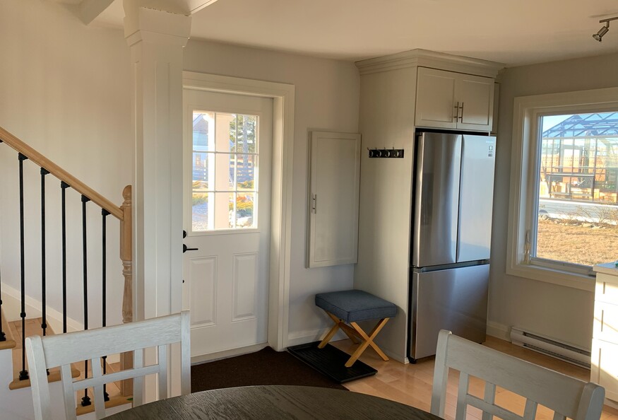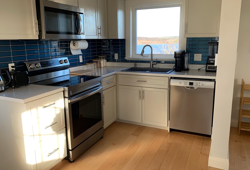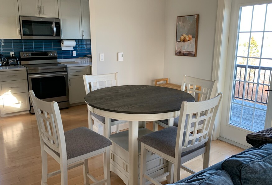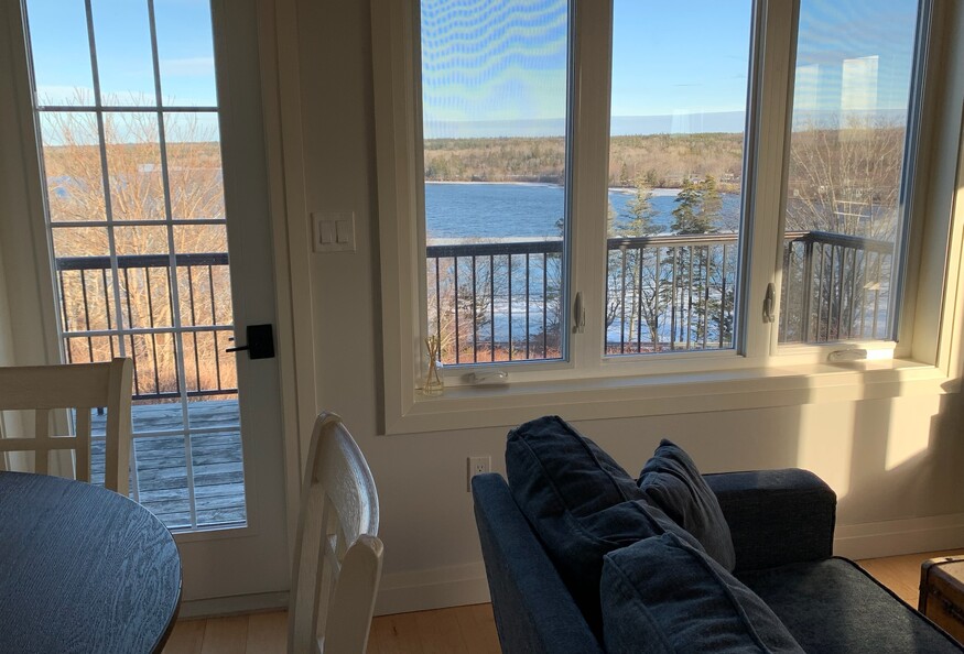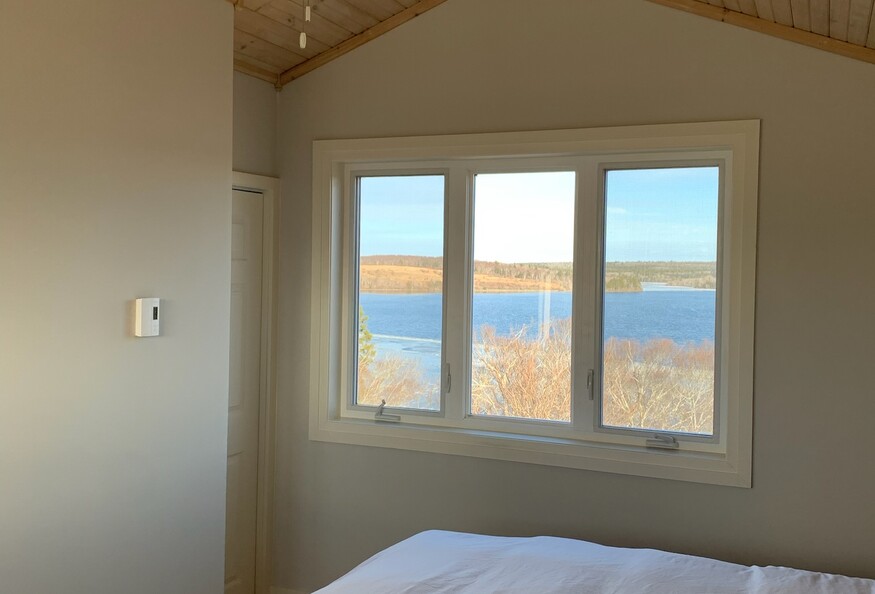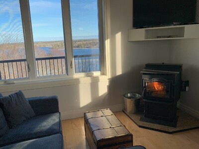 It's all about the view! Beautiful bright, private, fcottage overlooking Darlings Lake. Recently renovated, the first floor is open concept containing a small kitchen, dining area, living area and powder room. The kitchen includes a Keurig pressure coffee maker, blender, kettle, dishwasher, stove, microwave, full size fridge and treated well water from a drilled well. The living area has a couch, tub chair, trunk coffee table, pellet stove and smart tv. Upstairs is a queen size bed, closet and full bath with walk in shower and heated floor. There are gorgeous views everywhere, nice enough that we have not put up window coverings to interfere with the beautiful nature which surrounds you. Outside, there is plenty of parking and a balcony. Electric heat and pellet stove heat for the winter, and no air conditioning in the summer as there is almost always a good cross-breeze and a ceiling fan in the bedroom.