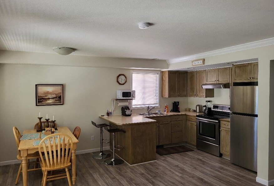 Fully furnished 2-bdrm Legal Suite on the ground floor of our home. We are a retired couple who have been renting to travel nurses since 2023. Located 3 blocks from KGH (430m, 5 minute walk). Features include: