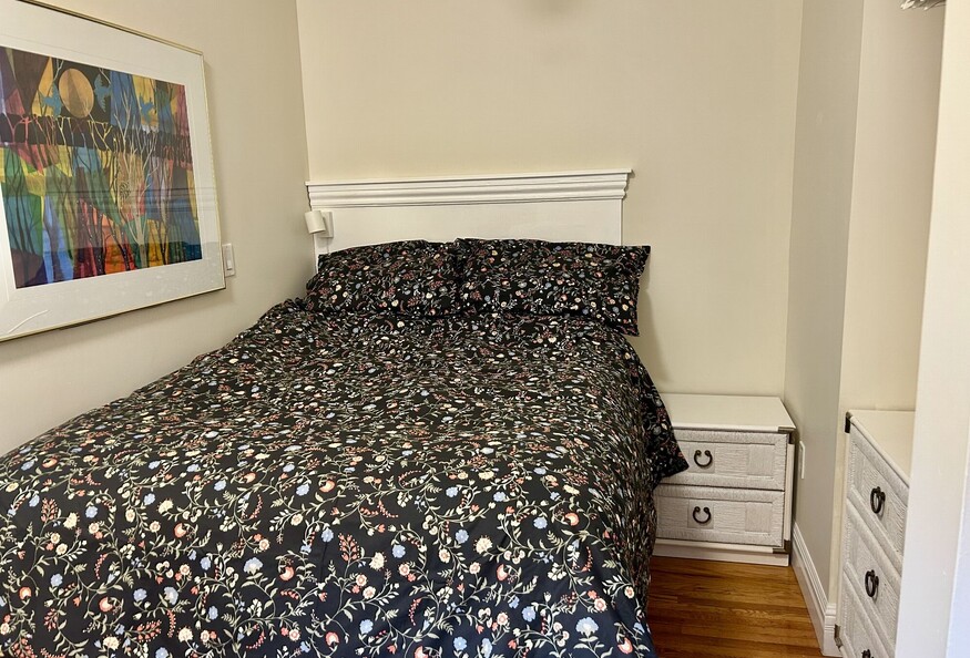 Hardwood floors, full kitchen, lots of cupboards and extra storage. Fabulous comfy bed.!