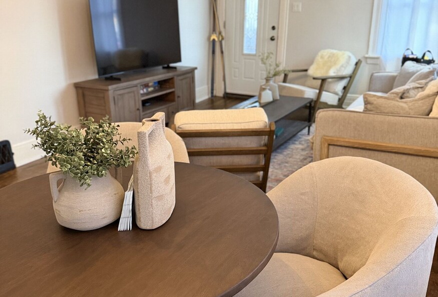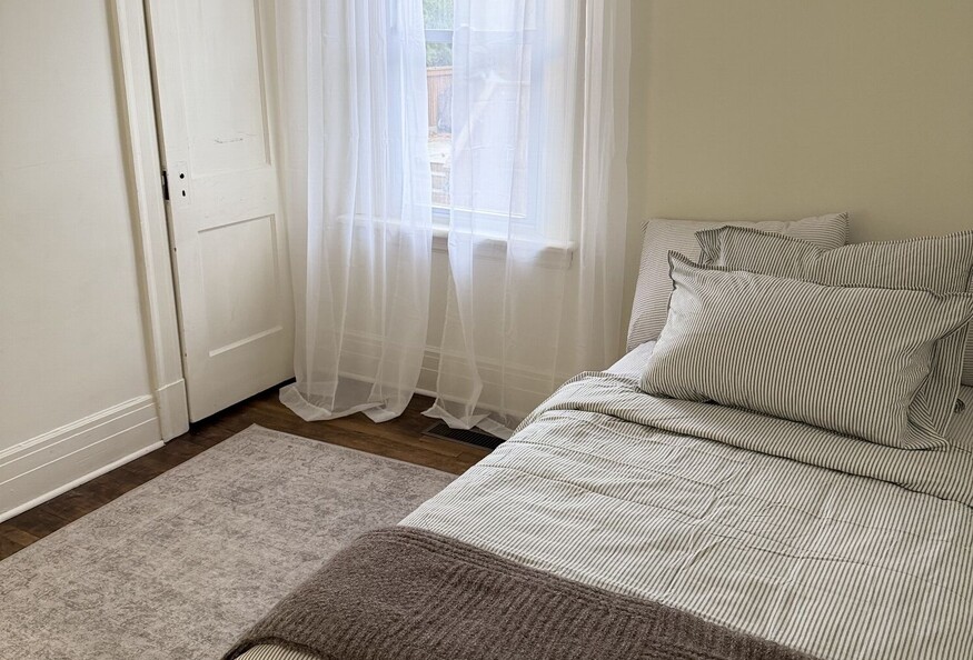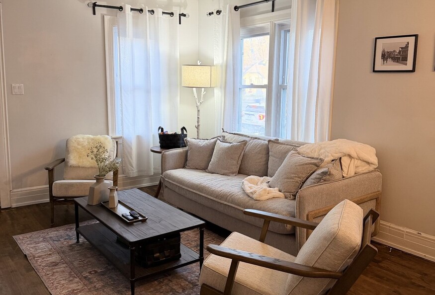 ✨ Features: • 3 bedrooms, 1 bathroom • Bright, updated kitchen with modern appliances and plenty of storage • Spacious living room with large windows for natural light • Private deck and yard with mature trees - perfect for relaxing outdoors (maintenance free!) • In-unit laundry • New boutique furnishings