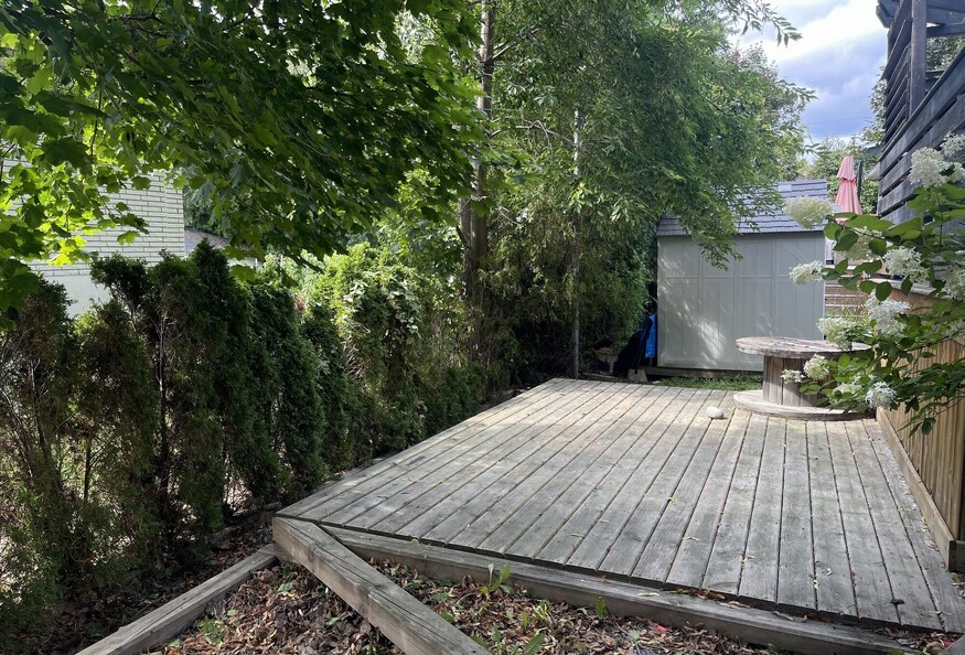 ✨ Features: • 3 bedrooms, 1 bathroom • Bright, updated kitchen with modern appliances and plenty of storage • Spacious living room with large windows for natural light • Private deck and yard with mature trees - perfect for relaxing outdoors (maintenance free!) • In-unit laundry • Unfurnished (option to include large furniture items for an additional cost)