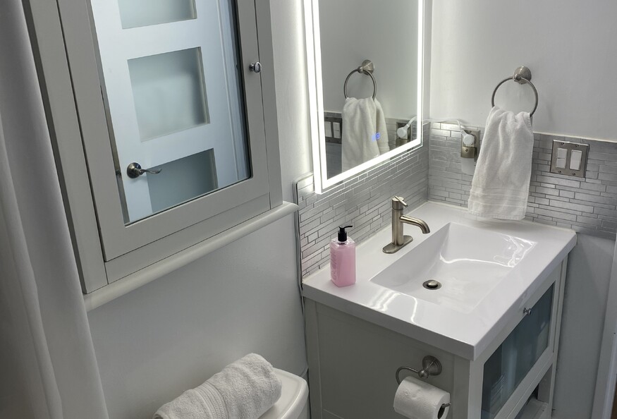 • A sparkling renovated bathroom with fresh towels, washcloths, and complimentary toiletries for your comfort.