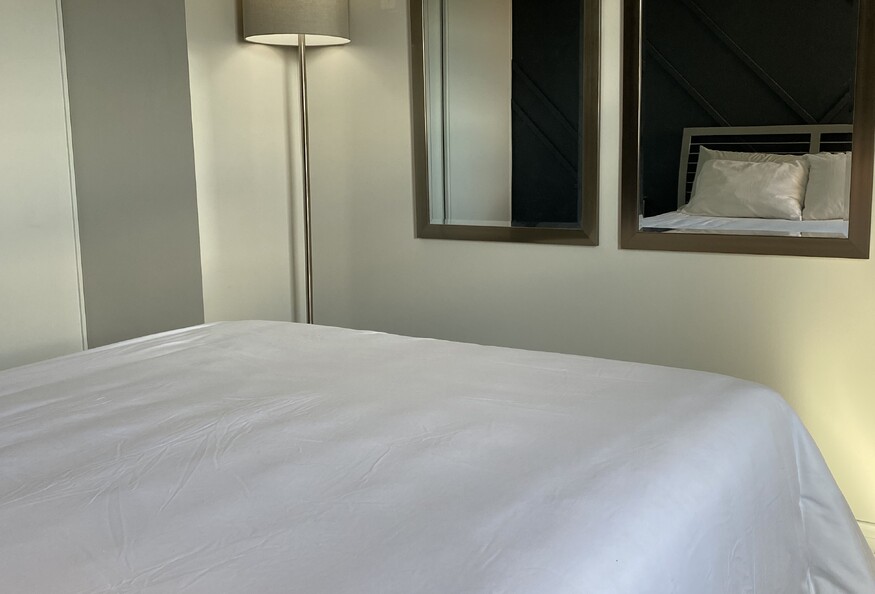 • A chic and inviting bedroom sanctuary, complete with plush bedding for a restful night's sleep and ample storage to keep your stay clutter-free.