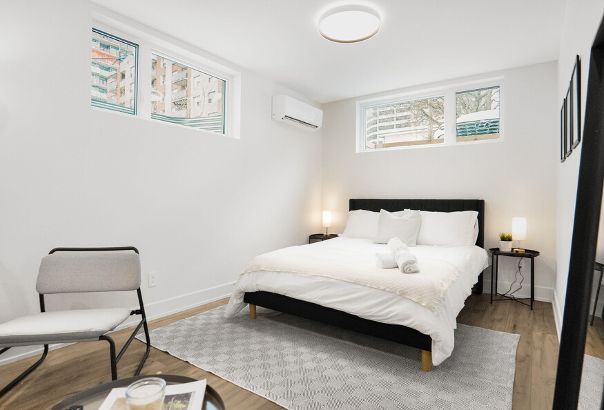 Look no further - you found the perfect place for your stay in central Ottawa. Complete privacy in this studio with a separate entrance + exclusive use of all amenities (no shared spaces) 9 min drive to Ottawa Civic Hospital and 15 min drive to the Ottawa Hospital General Campus (uOttawa Faculty of Medicine) Clean. Modern. Fast WiFi. We're ready to host you! Relax and get a good night's sleep in a cozy home away from home. Walking distance to restaurants + trails along the Ottawa River. Minutes from public transport (Tunney's Pasture Station). Near landmarks like Ottawa Civic Hospital, Carleton University, & more We welcome you to this inviting, modern, and cozy studio space. It offers you the perfect retreat for a perfect, carefree stay. The combined studio space is furnished with modern furniture that will exceed your expectations, and heated flooring throughout. The studio is the ideal space for a single person or couple looking for a cozy oasis during their stay in Ottawa. Located on the lower floor, the unit features oversized windows allowing plenty of natural light to illuminate the space, and includes blackout blinds to block out any unwanted light for those extra minutes of sleep. High-end modern finishes include laminate floors and marble finishes, creating a pleasant, warm ambiance. ★ BEDROOM ★ Stylish interior design with carefully picked amenities and decorations make up for this lovely studio space. A large queen bed is available to you, allowing for a comfortable and relaxing stay. ✔ Queen-Size Beds with Luxury Mattresses, Pillows, Linens, and Sheets ✔ Closet, Shelf Space, and Large Dresser ✔ Reading Lamps ★ KITCHEN ★ This studio includes a fully equipped kitchen in which you can easily prepare your favorite delicious meals and enough space to seat all guests comfortably. ✔ Microwave ✔ Oven ✔ Stove ✔ Refrigerator/Freezer ✔ Dishwasher ✔ Keurig Coffee Maker ✔ Sink - Hot & Cold Water ✔ Dishes (Plates + Bowls) ✔ Glassware ✔ Cooking Utensils ✔ Silverware ✔ Pots & Pans ★ LIVING ROOM ★ Stylish interior design with carefully picked amenities and decorations make up for this lovely studio space. You will be able to quickly change your setting by moving a few steps around this well-furnished space. ✔ Cozy Sofa ✔ 50" 4K Smart TV w/ Netflix, YouTube, etc. ✔ Reading Chair and Lamp ★ DINING AREA + WORKSPACE★ Stylish interior design with carefully picked amenities and decorations make up for this modern space. You will be able to quickly change your setting by moving a few steps around this well-furnished space. ✔ Dining Table with seating for 2 people ★ BATHROOM ★ The full bathroom offers guests their own oasis. Feel comfortable and relaxed in a spa-like environment. ✔ Large Bathtub/Shower ✔ Sink ✔ Mirror ✔ Toilet ✔ Towels ✔ Makeup Mirror ✔ Hairdryer ★ LAUNDRY AREA ★ ✔ Washer/Dryer in One ✔ Iron ✔ Drying Rack The health, safety, and well-being of our guests are of utmost importance. For this reason, we have implemented a thorough cleaning process after each check-out. Experience the heart of Ottawa from this cozy studio space. We look forward to your stay with us. Guest access • Free High-speed WiFi • Self-check-in and check-out. • Parking is available (additional street parking and paid parking are also available) • Instant communication and friendly support from your host. • Convenient access to major roads, highways, and public transportation. • Laundry unit available in the unit. • Air Conditioning and heating with full temperature control, and Heated floors throughout the unit. • 55" HD Smart TV w/ Netflix, YouTube, etc. • Kitchenware and silverware to cook your favorite meals during your stay are readily available. • Complimentary bottled water for guests. • Towels for guests to enjoy a worry-free stay. Other things to note If you have any questions, please contact us, and we'd be happy to help you with your stay!