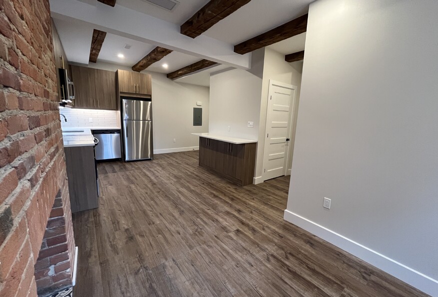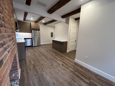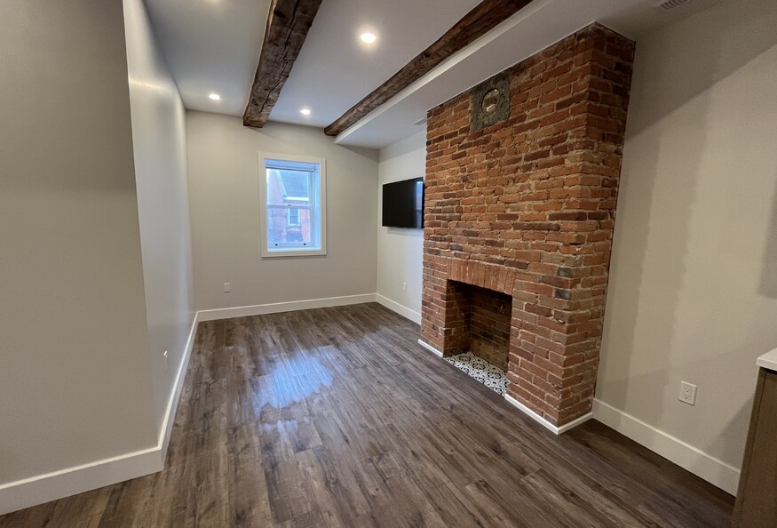 Availability: May 1, 2026 Modern two-storey 2 bedroom unit with rooftop terrace! Unit features original red brick fireplace (ornamental) Close proximity to downtown, restaurants, groceries and nightlife, and a 15 minute walk to Queen's Campus and KGH Vinyl plank flooring throughout the unit Kitchen with stone countertops, tile backsplash, and stainless steel appliances Appliances included: fridge, stove, dishwasher, microwave range-hood and washer and dryer Bathroom with walk-in shower, tile surround, and vanity with stone countertops. Please note the shower does have a glass door, the photos do not reflect this. In-suite laundry A/C - Central air Wall-mounted smart TV included! Utilities extra Parking available at an additional cost ($150/month)