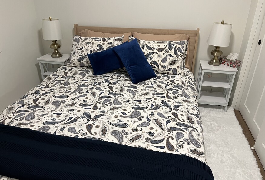 2 Bedroom / 1 Bath- quiet contemporary clean above ground suite. Laundry in suite, dishwasher, Queen bed in each bedroom.