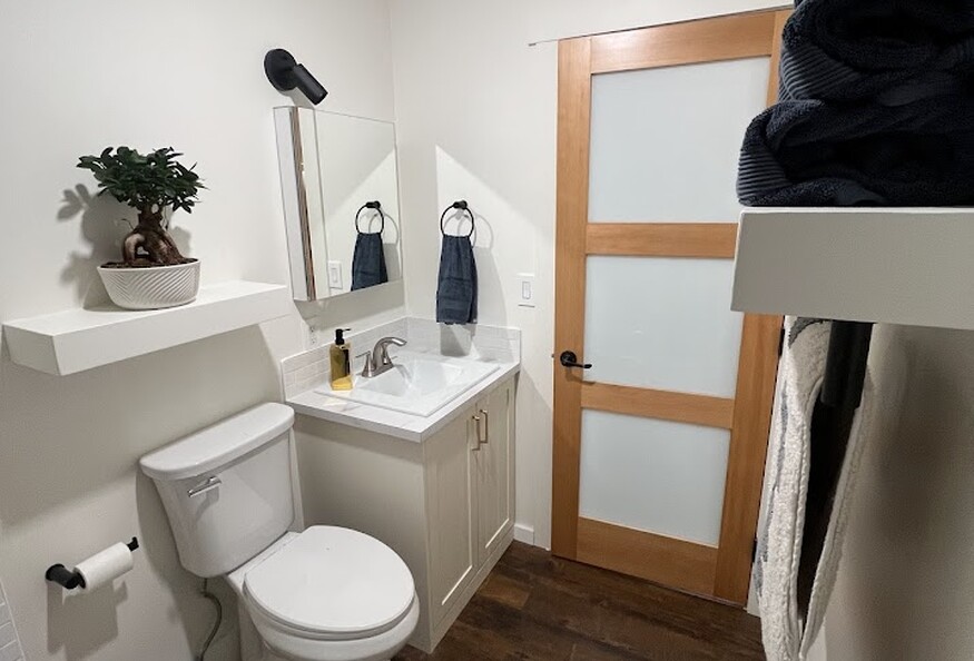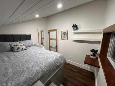 Fully furnished 400 sq ft apartment with a large private deck and mountain views, accessed via the deck. Features custom cabinets, a compact kitchen with all-new appliances, and a raised bed with built-in storage. Bay window overlooks pastures and cows. Bathroom with tub/shower. Entry bench and storage, secure locker for gear, fire pit, garden bed, chickens and fresh eggs. Just 7 minutes from town, close to world-class fishing, great hiking, and kayaks included.