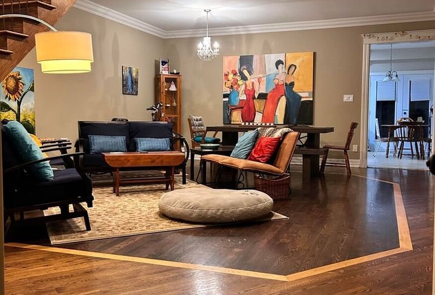 The main floor has the kitchen, living/dining room, and a powder room. We are quiet people.