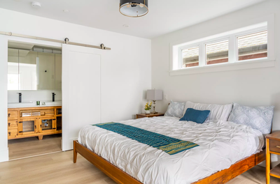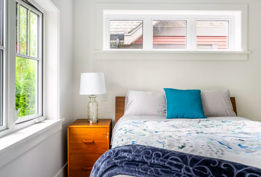 1 Master bedroom with Queen bed & spa ensuite bathroom. 2nd bedroom has Queen bed with large walk in closet. This property is set in the peaceful secure urban forest of the 16th and Columbia Mt Pleasant neighbourhood.