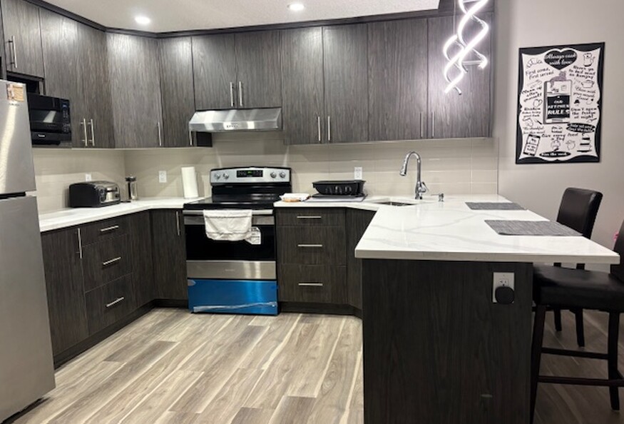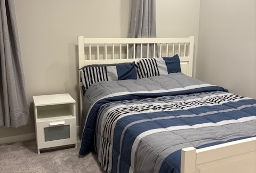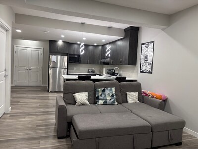 Med Students/Professionals who are looking for a short or long term rental in Calgary for your electives/residency/fellowship, fully furnished with separate side entrance. 1 bedroom legal basement suite with 3 piece bathroom and in suite laundry, Separate Heating system (Thermostat control). It boasts with 9 ft ceiling with lots of pot lights. Blackout curtains in the room creating dark and serene sleep. It has a stocked kitchenette (pots, pans, dishes, utensils) with fridge, microwave, stove, toaster and Keurig coffee machine. Street parking (free) is available directly in front of the property, and the property is close to transit (bus). The property is walking distance to Walmart, T&T, McDonalds, Tim Hortons, Scotiabank, Good life Gym etc. Located in the Sage Hill NW neighborhood.